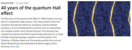 1980年,量子霍尔效应的发现对此后凝聚态物理学的发展产生了深远影响。在过去40年中,这一发现激发了无数新的理论和实验成果。为纪念量子霍尔效应40周年,Nature对旗下期刊发表的相关综述、新闻稿和评论文章进行选录,制作合集。该选集收录了成人直播 肖孟教授参与的两篇综述文章:Topological phases in acoustic and mechanical systems(《声波和弹性波中的拓扑相》)与Topological sound(《拓扑声学》)。