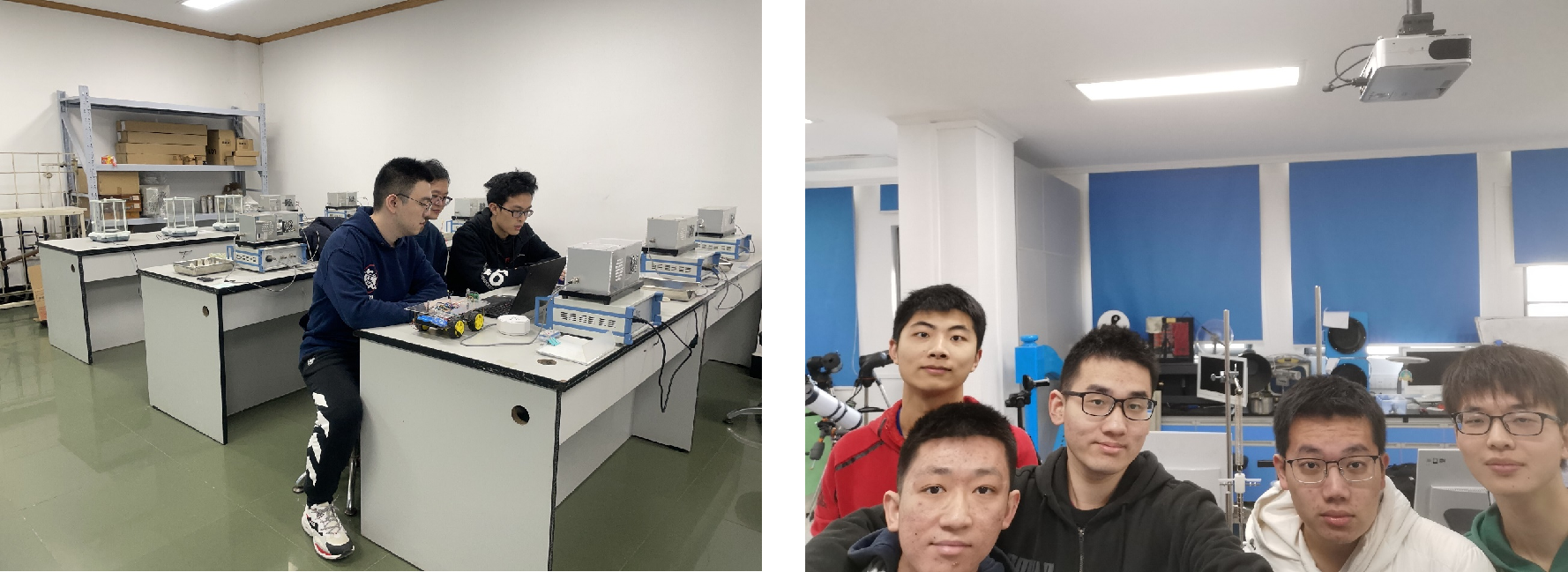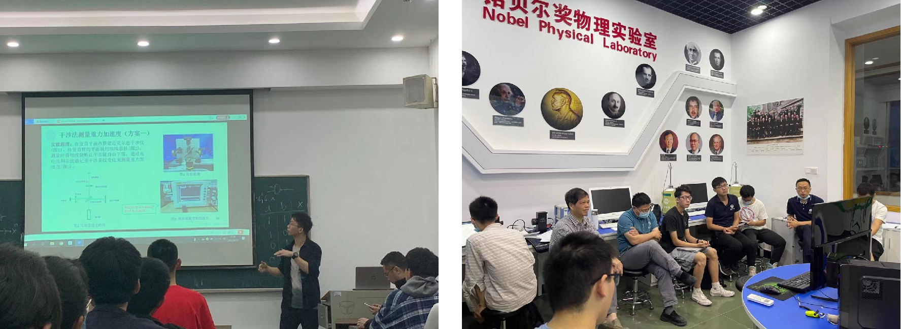 国赛复赛线上答辩现场(“基于图像噪声源模拟单粒子布朗运动”) & 赛后队员合影(“利用韦尔伯福斯摆测量弹簧材料泊松比”)