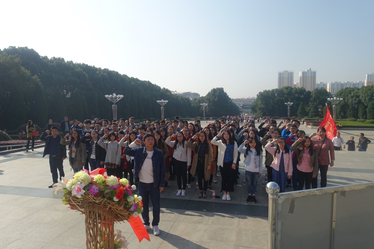 早七点,各支部成员准时到达集合地点,乘坐巴士来到了湖北省黄冈市红安县,经过近2小时的车程,我们到达了首站——黄麻起义和鄂豫皖苏区革命烈士陵园。这座园区是为纪念黄麻起义和鄂豫皖苏区在革命斗争中牺牲的烈士而建成的。怀着无比的崇敬之情踏入园中,穿过绿瓦红檐的高大牌坊,迎面而来的是高25.7米的纪念碑。在这里,党员们敬献花篮,面对着气势磅礴、庄严肃穆的纪念碑,鞠躬缅怀黄麻起义和鄂豫皖苏区革命烈士。随后后同学们在学生党支部书记马俊杰同志的带领下重温入党誓词,紧握右手,庄严宣誓。