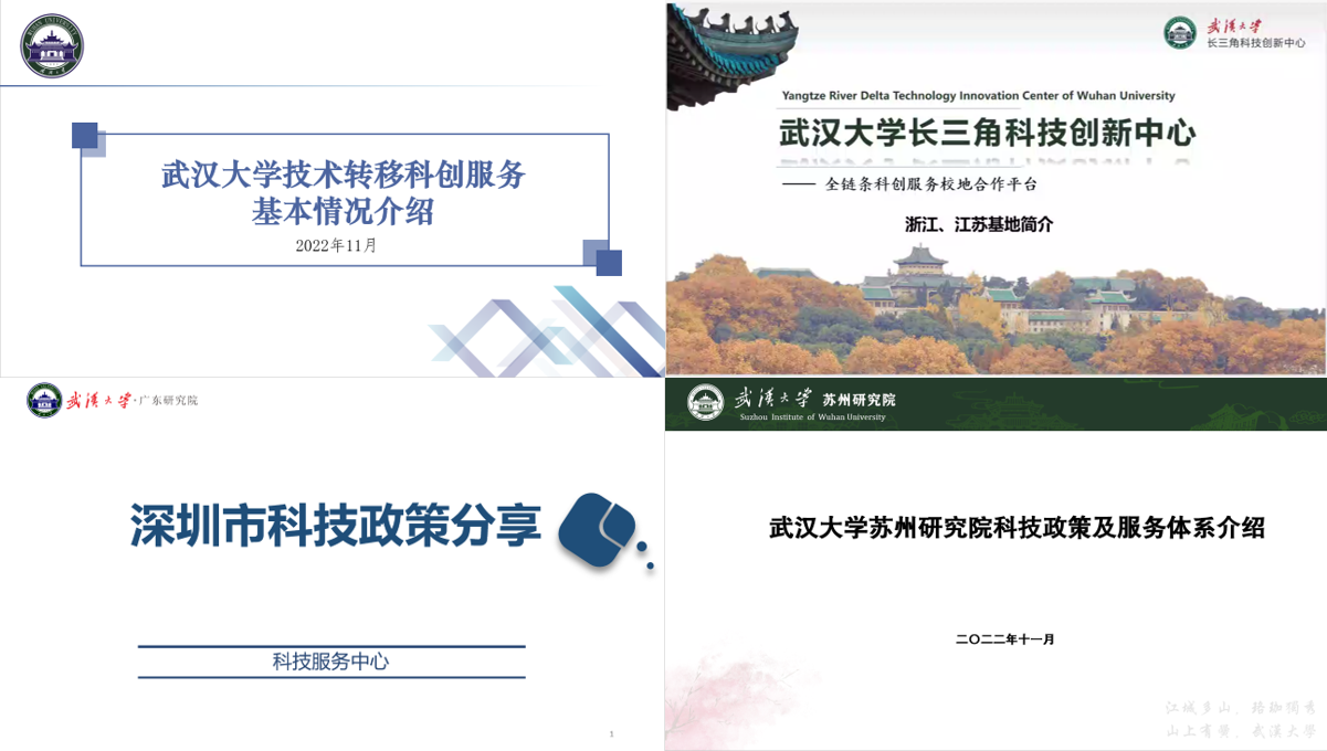 长三角科技创新中心,重点介绍了学校浙江、江苏基地。任盛主任对深圳市和广东省科技政策进行了解读,包括深圳市科技计划体系、承接国家重大科技项目管理办法及广东省基金项目资助体系等。王丽副主任重点解读了苏州科技创新环境、高校来苏州科技创新支持政策、苏州研究院科技工作服务体系及光子产业项目征集。