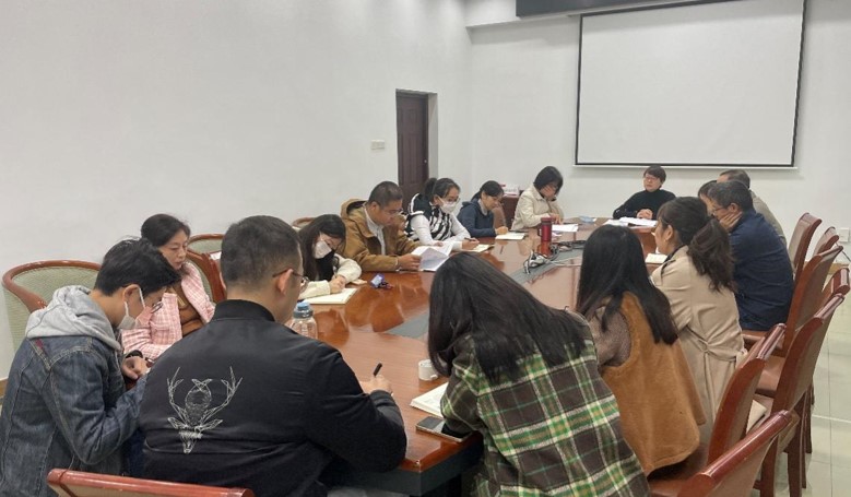 学习宣传贯彻党的二十大精神工作方案》文件精神。党委书记余向红指出,学习好、宣传好、贯彻好党的二十大精神是当前和今后一个时期的首要政治任务。一是坚持集中学习与自主学习相结合,教职工每周四集体学习之余,应自学相关理论资料,领会党的二十大精神;二是坚持线上宣传与线下宣传相结合,灵活运用新媒体、短视频等媒介,做强融媒创新宣传;三是坚持党建与管理相结合,提升管理服务能效,确保党的二十大精神落地落实。她表示,各办公室工作涉及学院工作的方方面面,作风建设要常抓不懈。她用“扫地”的例子形象比喻了对管理工作精益求精的要求:不能满足于扫一遍,还要拖一遍,将容易忽视的角落抹一遍,层层延伸递进,不断提高工作标准和质量。