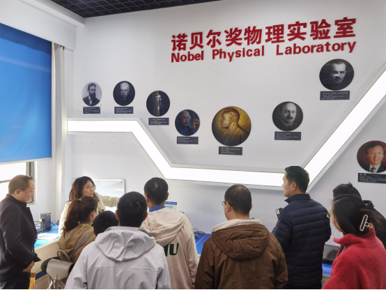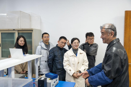 物理国家级实验教学示范中心的近代物理实验室、力热实验室、光学实验室以及电磁学实验室。参观过程中,与实验教学老师们进行了热烈的交流互动,深入了解了物理学科前沿的实验设备与研究成果。