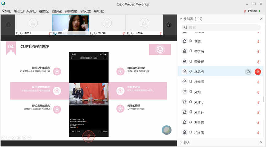 本科生党支部与北京大学物理学院本科生党支部开展了“青春心向党 南北共战疫”第二次共建活动之科研学术交流。本次活动以WebEx线上会议平台视频连线形式进行,来自两校的王玉、唐钺、刘子鸣、何染尘、陈烨、李奇正、孙东泽和沈艺鑫等8名优秀学生代表分享了他们在专业学习、科研竞赛和出国申请等方面的经历,并与参会同学进行了热烈的线上互动。北京大学物理学院党委副书记董晓华,副院长曹庆宏,团委书记张帆,专职辅导员商小琦、王婧以及成人直播