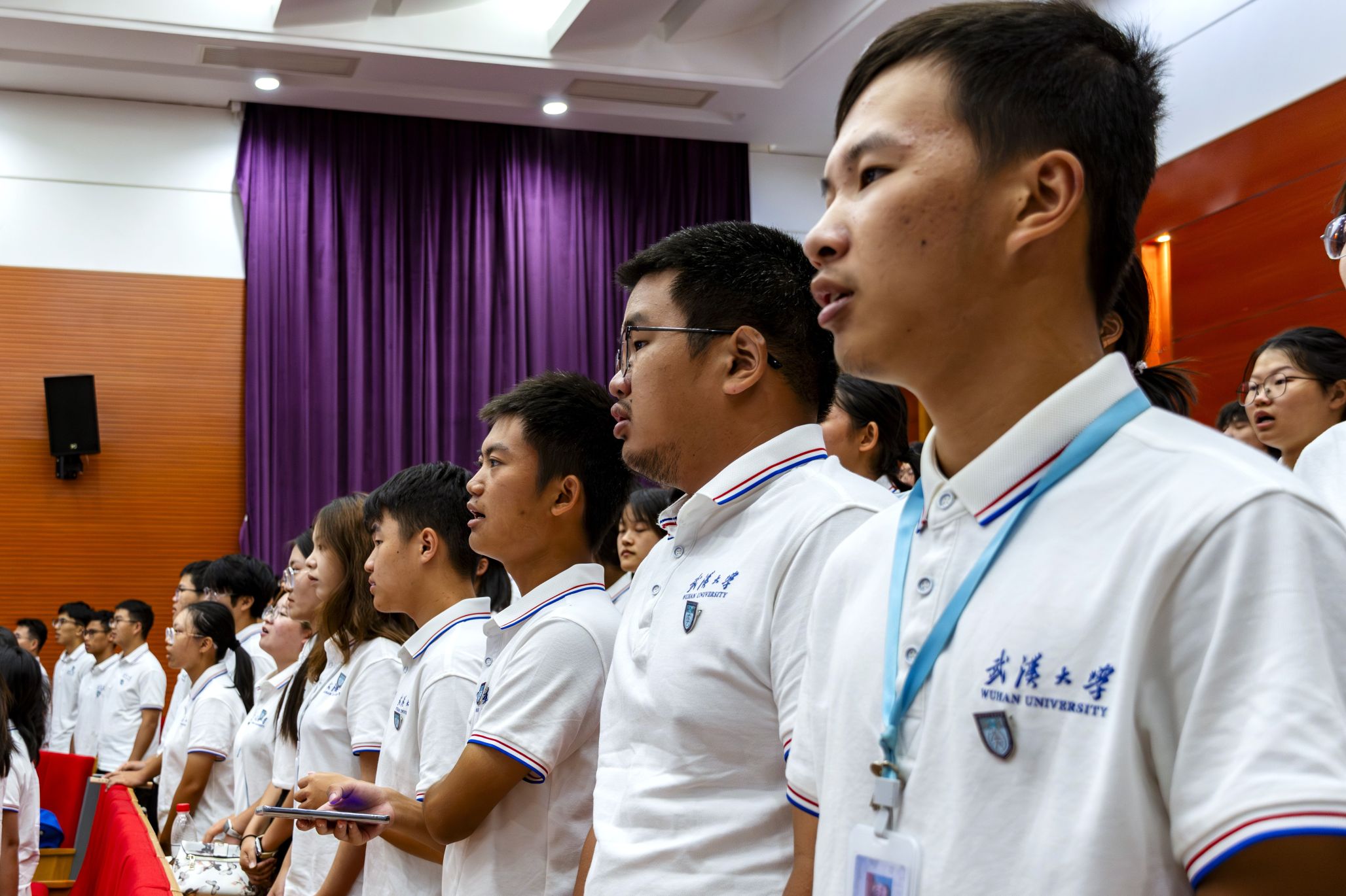 议程最后,全体师生佩戴院徽,合唱《成人直播 校歌》,成人直播 2024级本科新生见面会圆满落下帷幕。