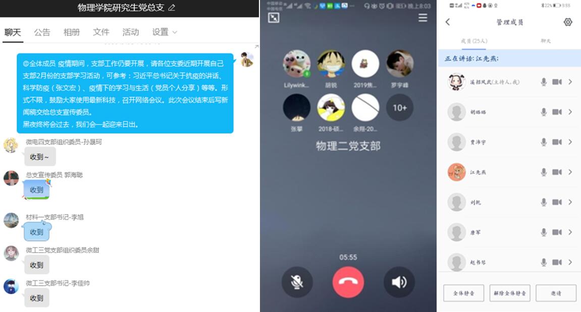2月25日,总支群中发出了学习习近平总书记关于疫情防控讲话的号召。各个支部书记积极响应,充分利用网络平台开展线上学习会议,带领自己支部同学深刻学习讲话精神,提高责任意识,坚定理想信念。