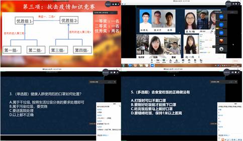 随后,党支部进行了激动人心的“抗击疫情”知识竞赛,由支部党员、积极分子、课题组非党员同学组成的4支队伍参赛,竞赛分为两轮进行。知识竞赛的过程非常紧张刺激,首先,竞赛题目紧扣主题,题型复杂多样;其次,答题方式有轮流答题和抢答环节,这无疑为赛事的激烈程度添了一把火;加上严谨而不失幽默的主持方式及互动环节,使得竞赛变得精彩纷呈!最后由实力较强的张攀组获得第一名。赛后大家纷纷表示:作为一名党员,定将发挥先锋模范作用,服从大局,带动亲友和身边同学严格遵守疫情防控的各项规定,及时向群众解疑答惑,不信谣不传谣,共同维护社会公共秩序。