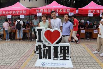 党委书记韩进、校长窦贤康等校领导及党委研究生工作部、研究生院、校团委等相关职能部门负责人来到物院报到处,为新生带去学校的问候和祝福。校长对logo的设计赞叹不已,并与新生和工作人员合影留念。镜头定格了这温馨的一幕,在场师生无不欢欣激动,迎新场面也达到了高潮。