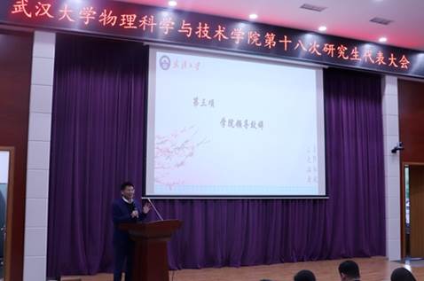 2019年4月12日晚,成人直播 第十八次研究生代表大会在物院一楼报告厅顺利召开。参加大会的有院长徐红星院士、校团委副书记代茜老师、党委研究生工作部黄啸老师、副院长李利华老师、党委副书记张一飞老师、院学工办主任李顺彦老师及全院160余名研究生代表等。大会由2018级硕士生吴慧娟主持。