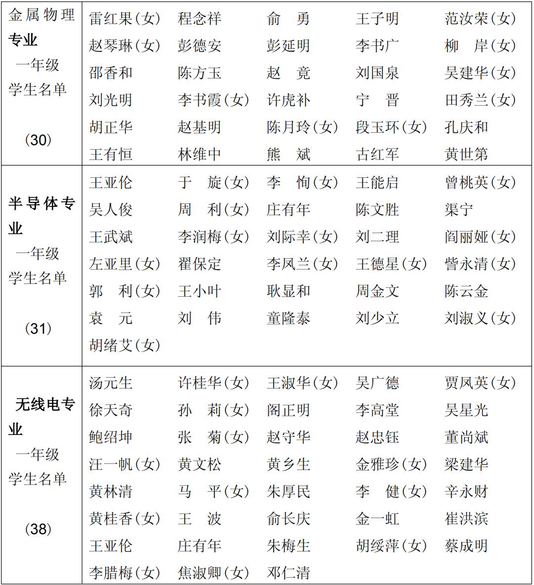 1974 级(1974~1977)物理学系(工农学员三年制)