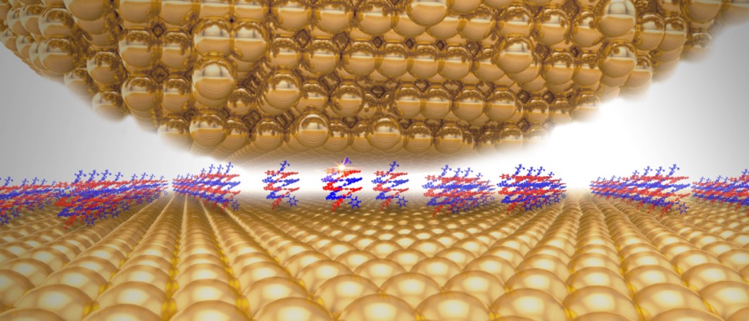 图1.超分子折叠体在等离激元纳腔中的示意图。感谢刘璐彬在该示意图绘制方面的帮助。