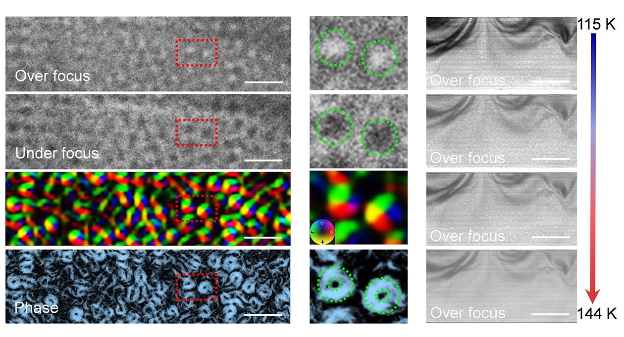 磁性斯格明子,即具有手性自旋的纳米磁畴结构,以其拓扑保护性、低驱动电流密度等特性而备受瞩目,被认为是未来信息存储器件中高密度、高速度、低能耗的理想存储单元。目前,磁电子学领域的研究热点之一是开发更多性能优越的磁性斯格明子新材料,这也被认为是实现磁性斯格明子实用化的关键所在。在本研究中,何军课题组开发了普适性的范德华外延法,在云母衬底上成功合成了单晶Fe5Si3纳米棒。对该纳米棒的磁性性能进行了系统的表征,并通过理论计算验证了其特性,包括室温下的长程铁磁有序性、磁化强度随磁场和温度的变化、饱和磁化强度以及高居里温度(~370 K)。在此基础上,利用洛伦兹透射电镜在没有外部磁场的情况下直接观察到了Fe5Si3薄膜中自发形成的斯格明子气泡和连续的磁畴结构变化。此外,电输运测量揭示了Fe5Si3明显的磁阻效应,在特定温度下可以实现正磁阻和负磁阻转换。该工作为研究不同拓扑自旋织构及其形成机制提供了途径,为铁硅合金在自旋电子学领域的创新应用提供了建议。论文题为“Spontaneous Skyrmion Bubbles in an Iron-Silicon Alloy with Uniaxial Magnetic Anisotropy”(具有单轴磁各向异性的铁硅合金中的自发斯格明子气泡)。成人直播