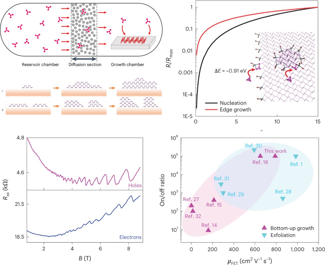 3月23日,Nature Materials(《自然•材料》)期刊在线发表了物理科学与技术学院何军教授课题组有关二维电子材料及光电芯片的最新研究成果。文章题目为“Growth of single-crystal black phosphorus and its alloy films through sustained feedstock release”,文章的通讯作者还包括中国科学院苏州纳米技术与纳米仿生研究所张凯研究员和湖南大学潘安练教授。