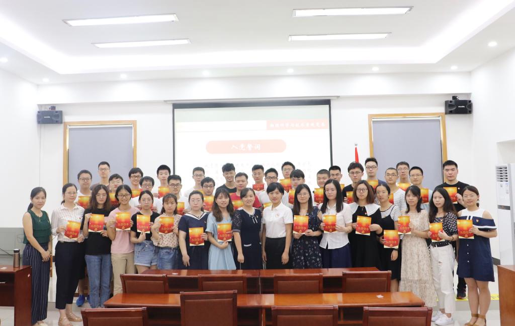 201971日下午,物理学院党员活动室里,传出了斗志昂扬、铿锵有力、饱含激情的宣誓声,为庆祝建党98周年,进一步激发新发展党员的使命感和归属感,让党员们不忘初心,牢记使命,用实际行动践行党的宗旨,学院党委组织2019年上半年发展的全体党员共同开展“七一”集体入党宣誓活动。大会上,面对鲜红的党旗,在党委副书记方萍同志的领读下,40余名预备党员面对党旗,紧握右拳,庄严宣誓。