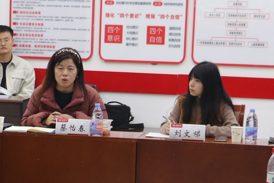 中国科学院武汉精密测量院的蔡怡春老师和汪琪同学从科研院所的实际出发,介绍他们在科研和党建相结合方面的工作,并对未来四家单位党建、科研方面的合作提出期望。