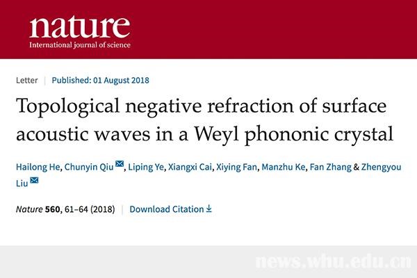 基础理论研究与应用研究并重,高水平科研成果不断涌现。随着国家对基础学科的日益重视和科研条件的改善,学院科学研究在量上有提升,在质上有突破。以第一署名单位在《Nature》(Nature 560, 61 (2018))上发表论文“Topological negative refraction of surface acoustic waves in a Weyl phononic crystal”(《外尔声子晶体中的声表面波拓扑负折射》),实现了武汉大学建国后历史上的突破。学院高水平论文数量和质量逐年增长,2021年第一单位发表论文246篇,其中,一区论文78篇,IF>10(含PRL)40篇。近年来,学院累计获得国家自然科学二等奖1项,湖北省自然科学奖一等奖4项,湖北省自然科学二等奖1项。学院与中科院精密测量院、华中科技大学共同组建武汉量子技术研究院,开展量子科学基础理论研究与核心关键技术攻关,推动量子工程示范应用和科技成果转化,在量子芯片、量子保密通信、量子材料、量子感知和量子计算等量子科技产业化上发展快速。