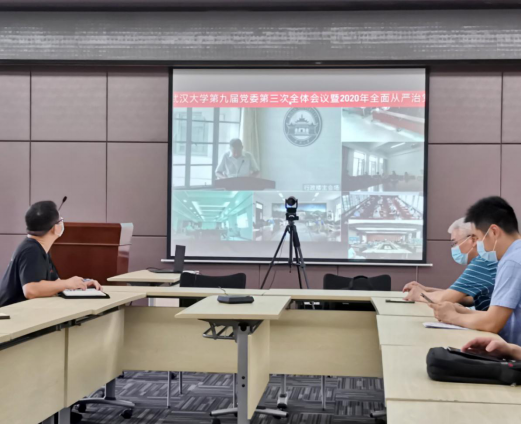 2020年5月28日学校召开武汉大学第九届党委第三次全体会议暨2020年全面从严治党大会视频会议,因疫情防控大会采取主会场和分会场同步视频形式,学院领导班子成员及各内设机构主任以上的干部参加了会议,校党委书记韩进做的关于学校2020年全面从严治党工作报告并部署学校2020年全面从严治党的工作任务。校党委副书记、纪委书记万清祥通报2019年党风廉政建设工作情况,布置2020年纪检工作。