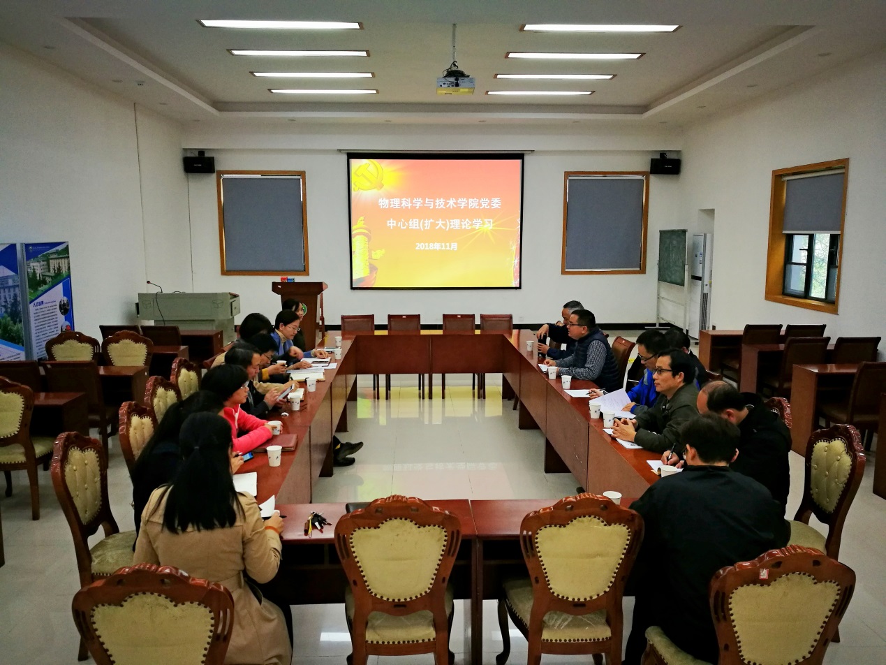 11月12日,学院党委理论学习中心组在党员活动室召开学习会议,党委副书记张宇宁传达了学校关于2018年作风建设有关工作的通知等文件精神,并带领大家一起学习了《关于进一步加强和改进管理与服务工作作风建设的意见》等系列文件,对其中重要的条款做了详细解读。根据学校相关文件精神,学院拟定了《物理科学与技术学院作风建设实施细则》,与会同志研讨了《实施细则》中的相关重要条款,并对如何有效落实提出了建设性的意见。