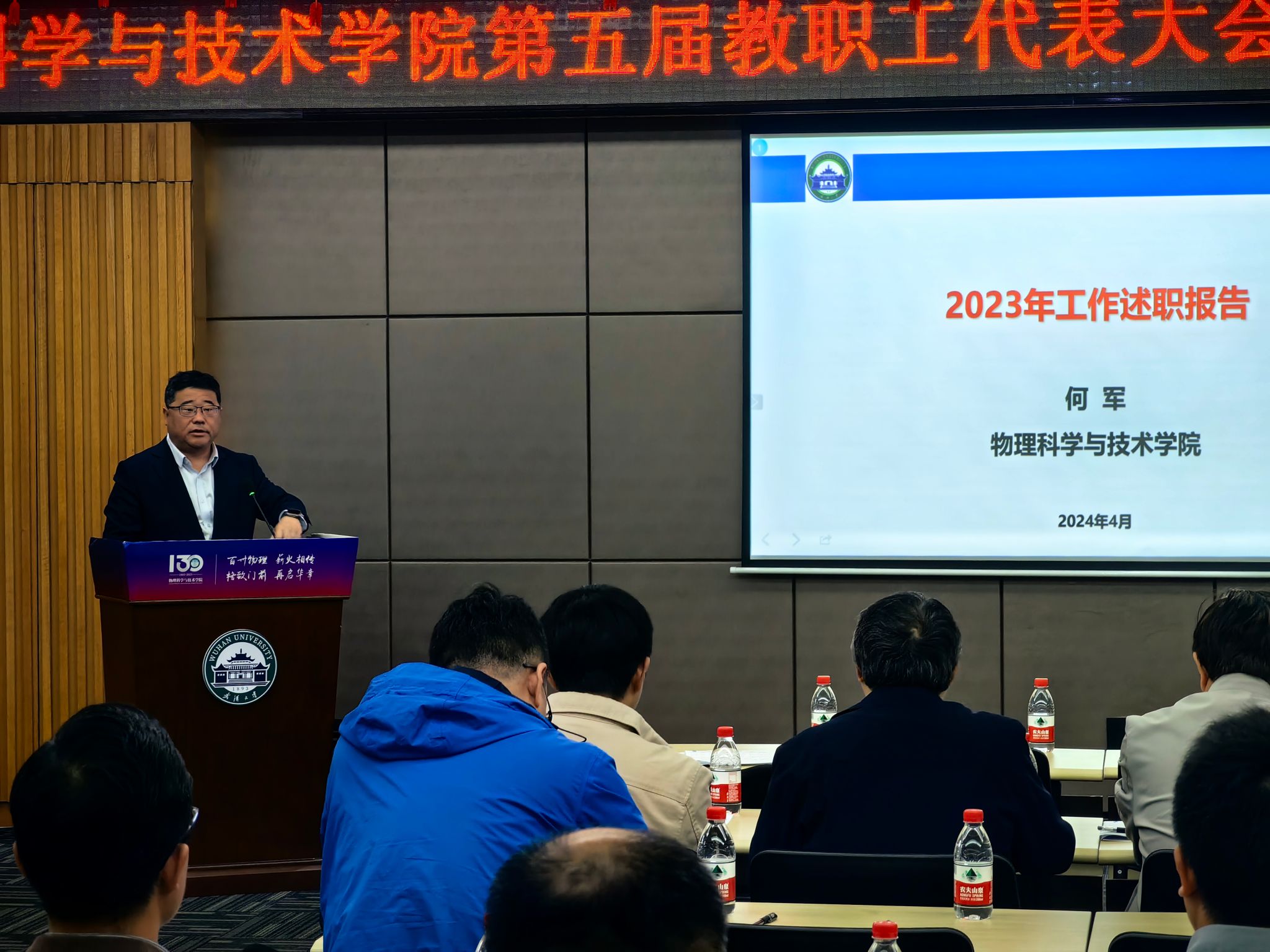 2024年4月11日下午,筹备已久的物理科学与技术学院第五届教职工代表大会第三次会议和工会会员代表大会,在庄严的国歌声中拉开帷幕,来自学院各系、中心的会员正式代表及特邀代表50多人参加了此次会议。