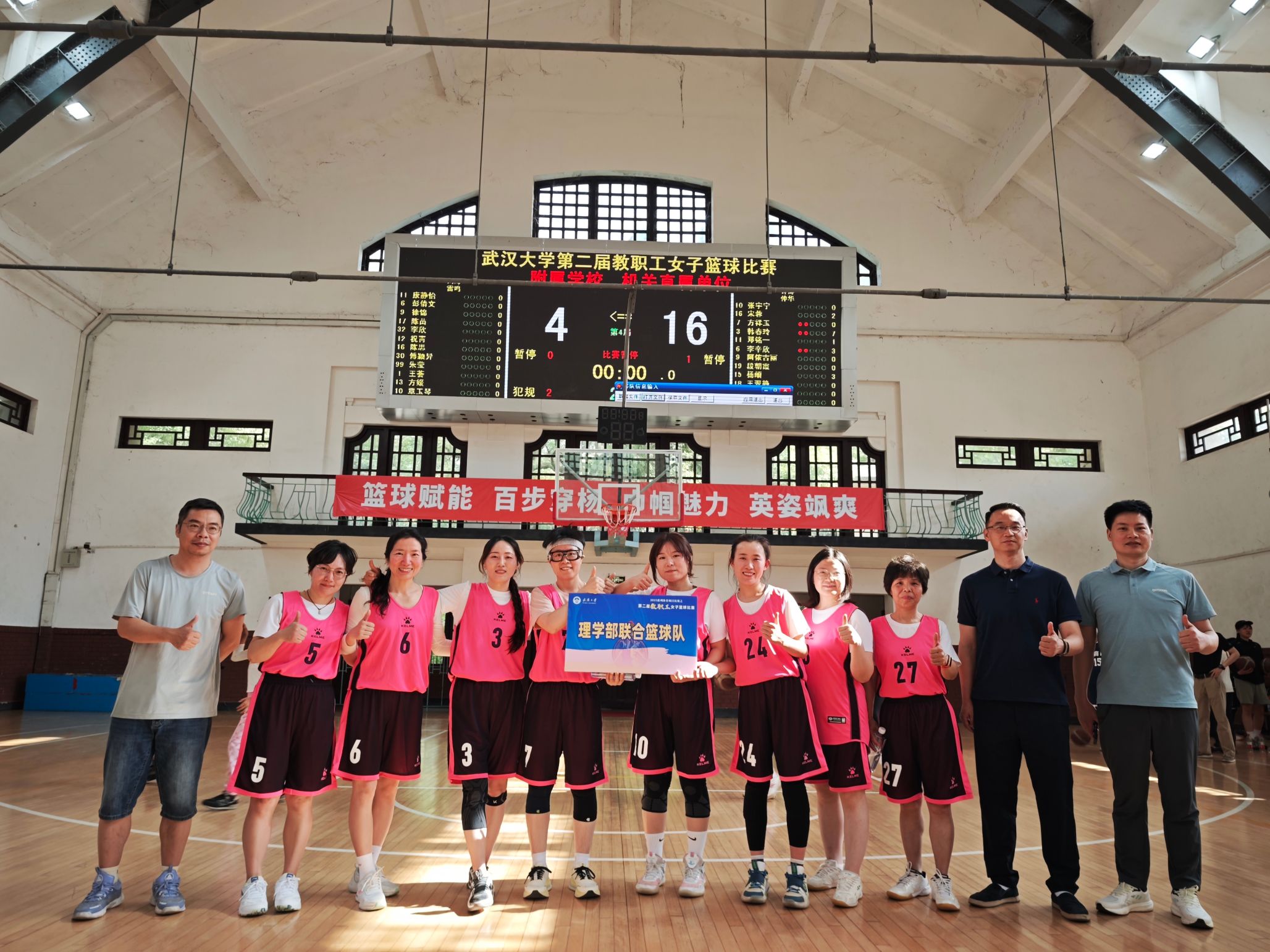 4月29日,武汉大学第二届教职工女子篮球比赛在宋卿体育馆落下帷幕。由物理科学与技术学院、化学与分子科学学院、资源与环境科学学院联合组成的理学部教职工女篮联队奋勇拼搏,最终斩获并列第三名的佳绩,展现了理学部教职工团结协作、昂扬向上的精神风貌。