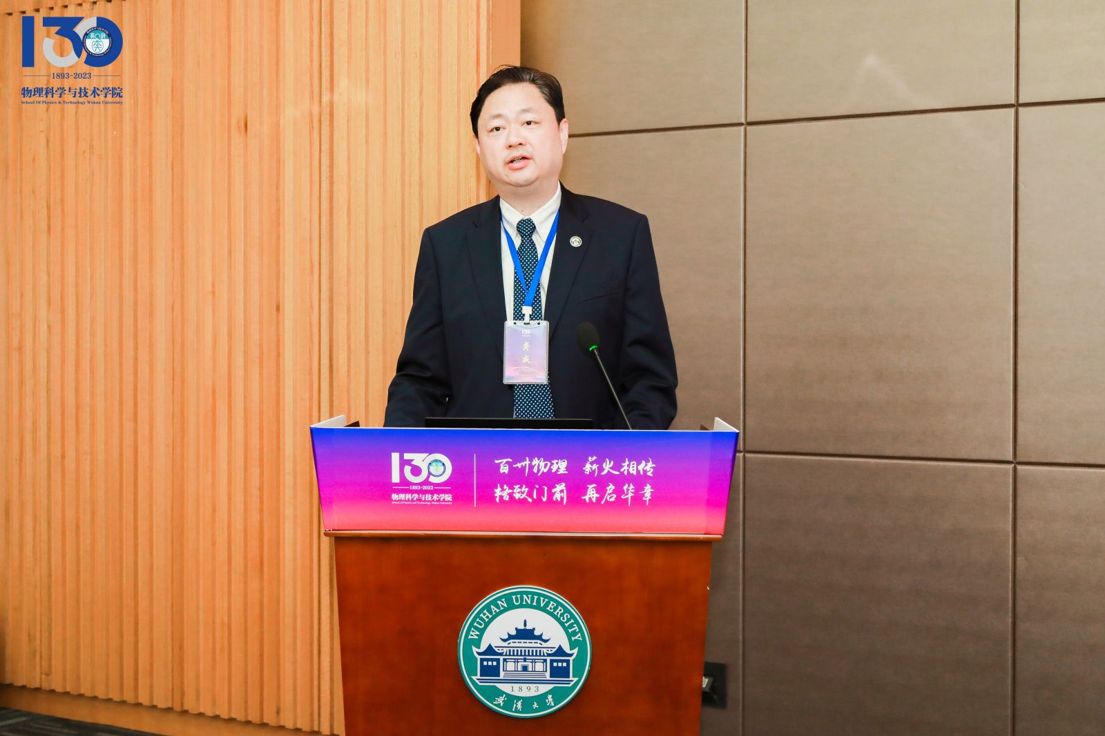 首先,龚威副校长代表武汉大学致辞,对本次研讨会的召开表示热烈的祝贺,对各位嘉宾的到来表示诚挚的欢迎。龚威副校长表示,物理学院精心布局,耐心积累,全体教职工发扬“格物穷理创新,弘毅自强争先”的精神,埋头苦干,艰苦创业,经过百余年、几代人的不懈努力,现已发展成为国内具有较大影响力的物理学院之一。在新征程上,武汉大学物理学院要抢抓发展机遇,对标标杆物理学科,补短板、强弱项,推进物理学科再上新台阶。