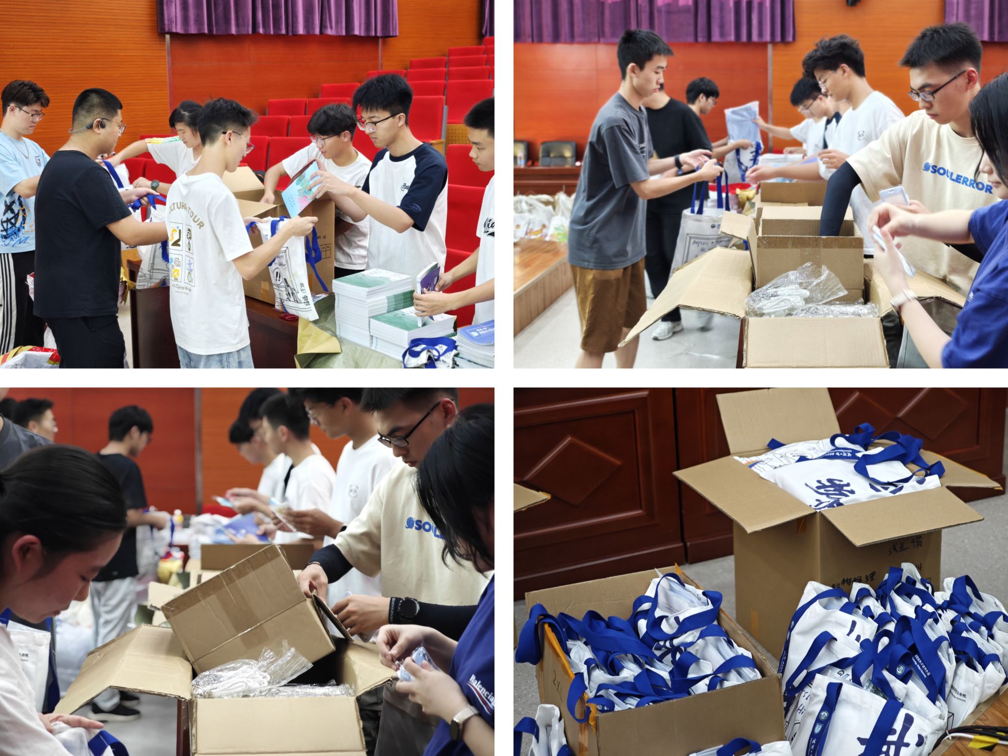 为了让新生感受到学院的温情与关怀,在新生开学之前,物院团学部门便精心策划着今年的迎新方案:精心修订的《物院新生手册》,从学院概况到衣食住行,满满都是学长学姐为新同学准备的“干货”。丰厚的新生礼包,文化衫、致新生团员的一封信、物院定制卡套、物院定制帆布包、防暑小风扇、驱蚊花露水等物资,满满都是物院师生对新生的人文关怀。报到点前,2024级辅导员彭瑾与团学部门工作人员精心布置新生打卡拍照装置,并对学院“一年级计划”安排进行详细指引,以期帮助新生与新生家长记录下入学珍贵瞬间,留存美好回忆,深入了解学院培养。