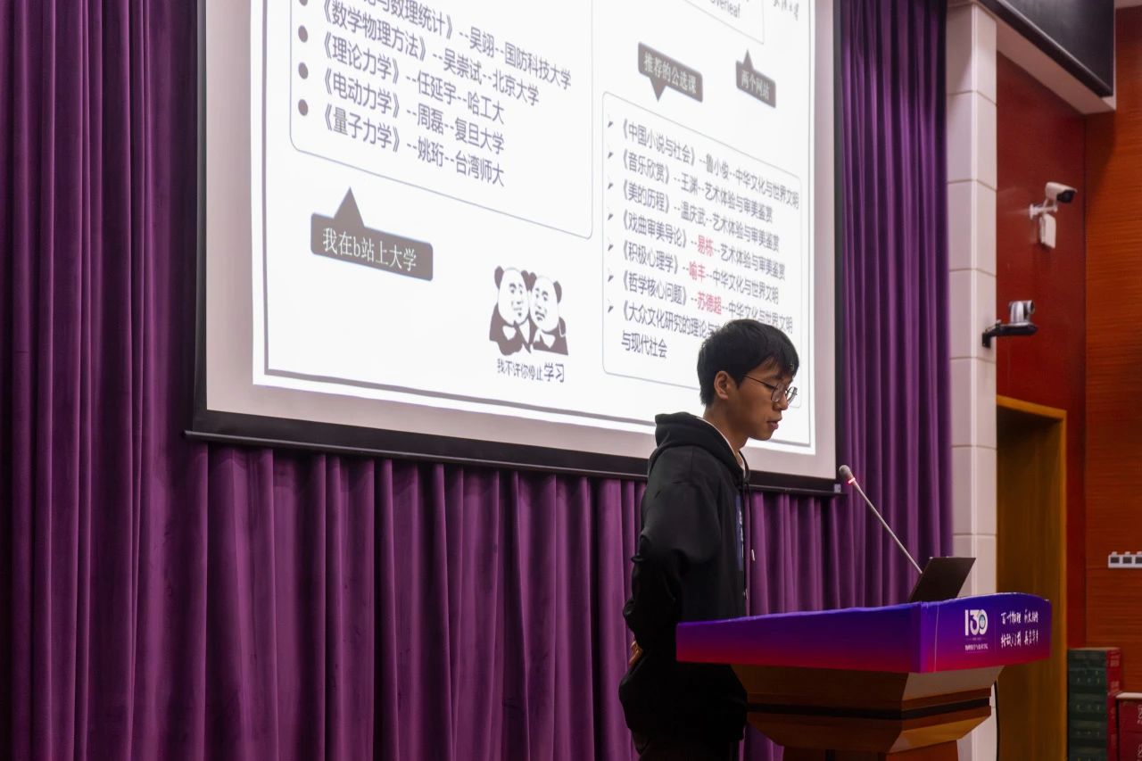 罗同学从转专业、参加课题组、学科竞赛以及学习之外的方面进行介绍。关于“转专业”,转专业的时间在大一下,他建议有此方面需求的同学可以在寒假期间于辅导员、学工部等处了解相关信息。关于“课题组”,罗同学建议大家可以在大一、大二时提前了解,旁听课题组的组会,大三去询问物理老师参加课题组。关于“竞赛”,罗同学建议大学在大一可以尝试数竞和物竞,大二去参加数学建模相关竞赛。此外,罗同学推荐同学们参加夏令营,并推荐了一个电子书的网站。他还建议同学们假期之中可以通过支教等志愿活动丰富大学生活,锻炼自己的同时可以缓解学习上的压力。