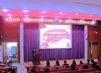 老楼一楼报告厅举行了第一届研究生党支部风采大赛。本次风采大赛共有12个支部参加。兼职辅导员龙云翔担任主持人。