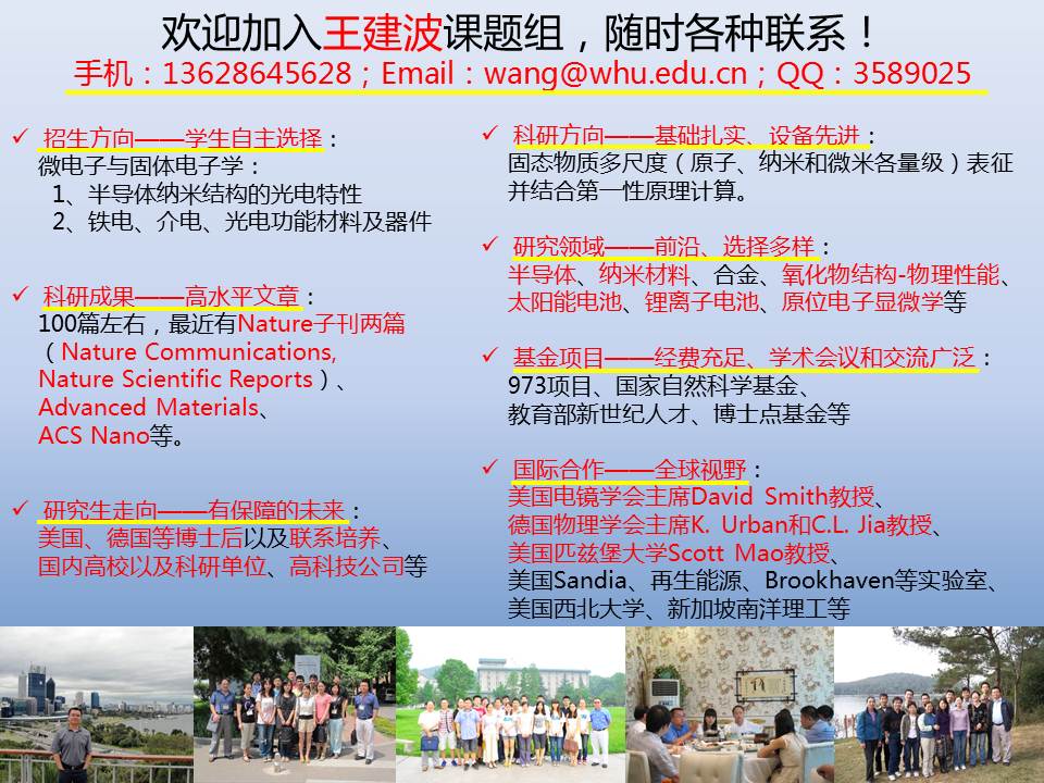 L. Li*, Z. Gan, M.R. McCartney, H. Liang, H. Yu, W. Yin, Y. Yan, Y. Gao, J. Wang*, and D.J. Smith*, Advanced Materials 26, 1052 (2014) () (highlighted in 2013). |