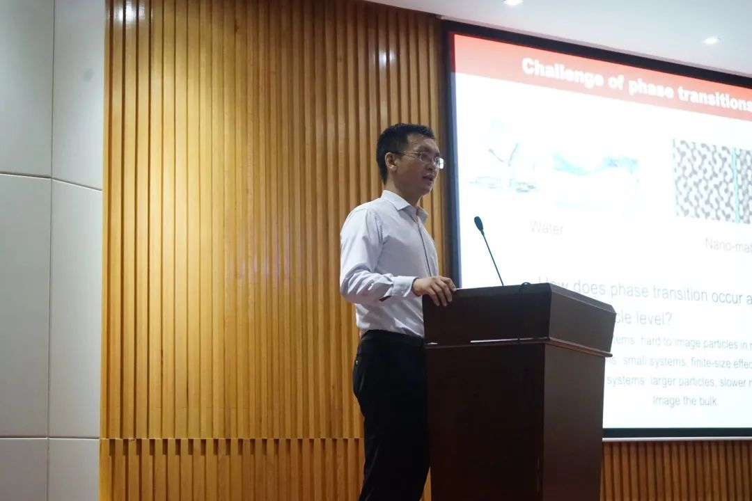 彭毅老师的报告以软凝聚态物质中的相变过程为主题。从冰化为水的过程为引,介绍到相变在日常生活中十分常见,但相变过程却是十分复杂且难以描述的过程。其团队利用胶体模型易于捕捉粒子运动轨迹的特点开展了一系列相变过程的研究,以一个个具体的实验案例,介绍了胶体在相变过程研究中的优势。