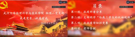 物理二党支部的党员同学及积极分子通过腾讯会议组织召开了“我是党员,战疫有我”的主题党日活动。支部指导老师刘惠军教授、学院党委副书记张一飞老师及总支书记尚才杰同学参加会议,支部书记唐庆航同学主持此次会议。