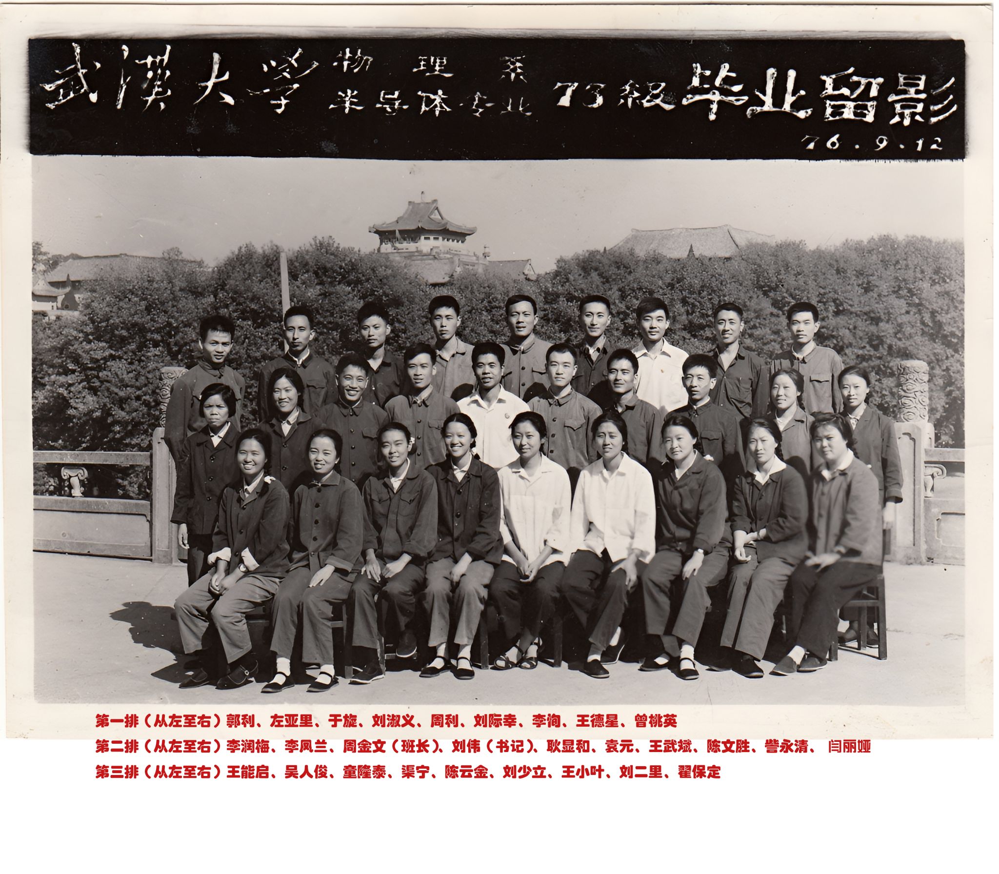 武汉大学物理系1975届团总支学生会全体同志留念