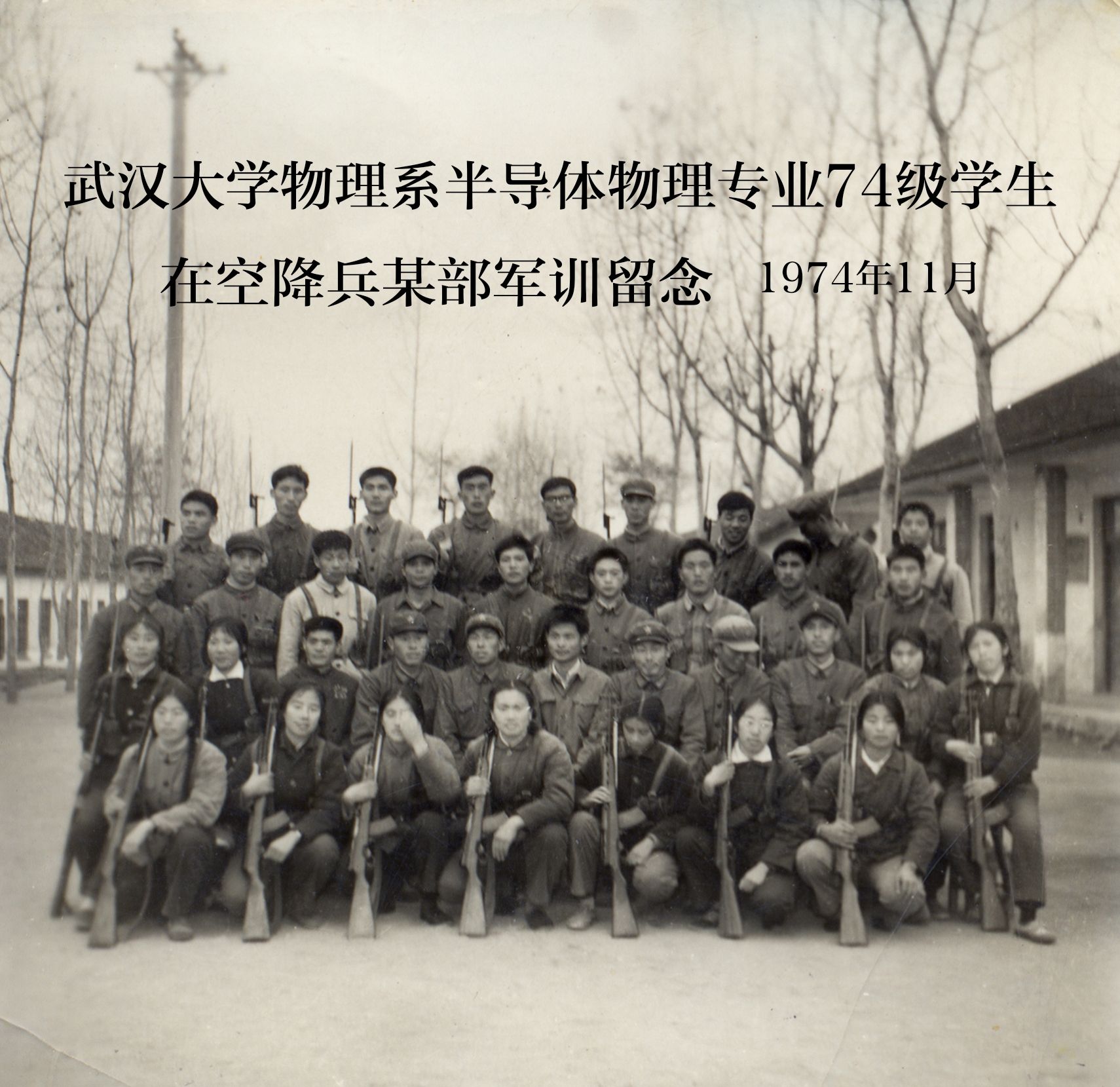 武汉大学物理系半导体物理专业74级学生在空降兵某部军训留念