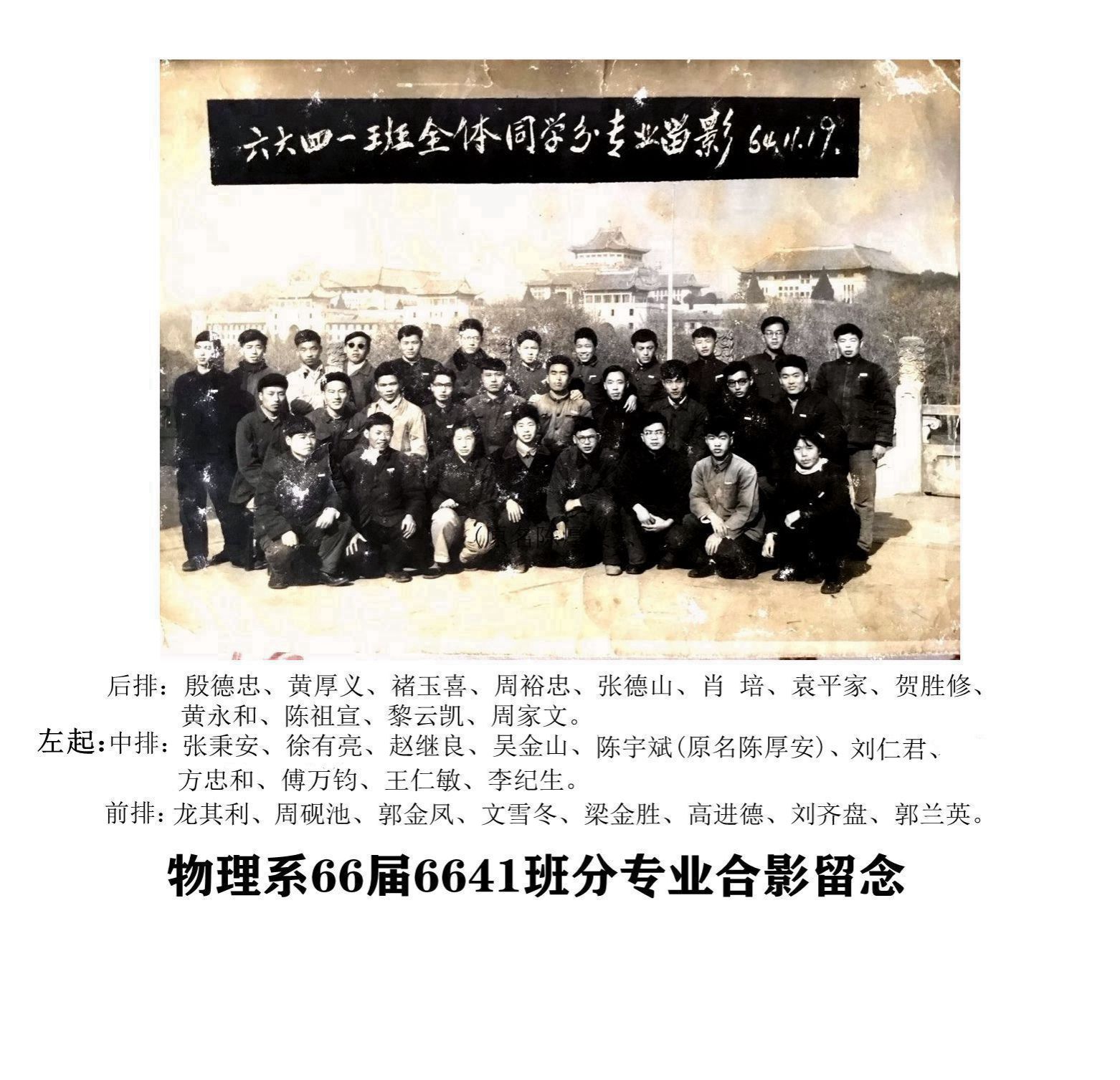 武汉大学物理系1966届6641班分专业合影留念