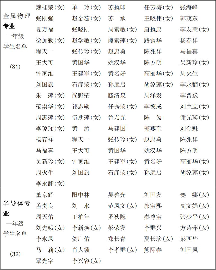 1974 级(1974~1977)物理学系(工农学员三年制)