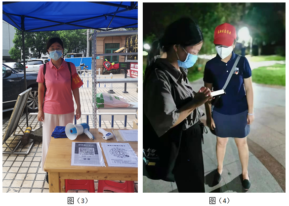 暑假期间王植平同志(图1)积极参加银海雅苑社区疫情防控,轮班值守多次。方鹏飞同志(图2)、熊冬霞同志(图3)、张一飞同志(图4)积极参加各自所在社区的值守卡点工作,为进出行人车辆做好测温、扫码和登记工作。赵新月同志(图5)积极参与校内测绘社区核酸检测现场秩序维护工作。龚荣同志(图6)在广八路社区的志愿服务中,主动承担并完成多项任务,除了到现场做好核酸检测、卡点值守等工作,还在线上协助做好了外来高风险人员以及新冠疫苗接种等信息排查工作,在疫情防控一线中体现党员的责任担当!
