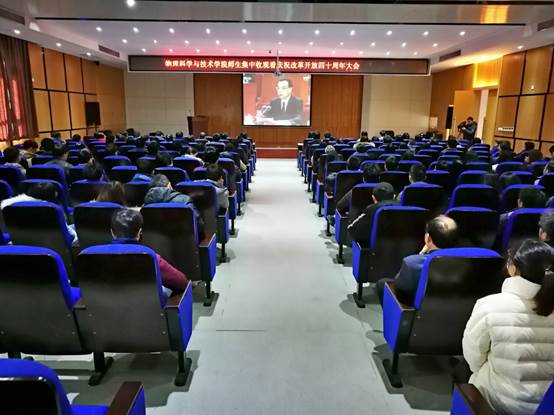 1218日,习近平总书记在庆祝改革开放40周年大会上发表重要讲话,为了加强学院师生员工理想信念教育,不忘初心、牢记使命,激励自我,学院党委组织全体师生员工集中观看大会直播,共同回顾中国改革开放40年的伟大历程,总结经验,继续前行!