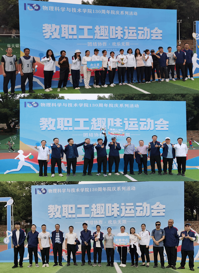 在七个项目的激烈角逐中,每个小组都展现出了顽强拼搏的精神。无论是身手矫健的年轻教师,还是经验丰富的资深教授,每个人都发挥出了自己的特长和潜能,展现出了顽强拼搏的精神风貌。学院工会为此次趣味运动会筹备已久,运动会的精彩离不开台前幕后工作人员的辛苦付出。经过激烈角逐,办公室工会小组、物理二/材料工会小组和实验中心工会小组分别获得了本次运动会的冠、亚和季军,他们不仅在各项项目中表现出色,而且展现出了极高的团队协作能力和互助精神。在颁奖仪式上,学院领导为获奖小组颁发了奖杯,向他们表示热烈的祝贺。