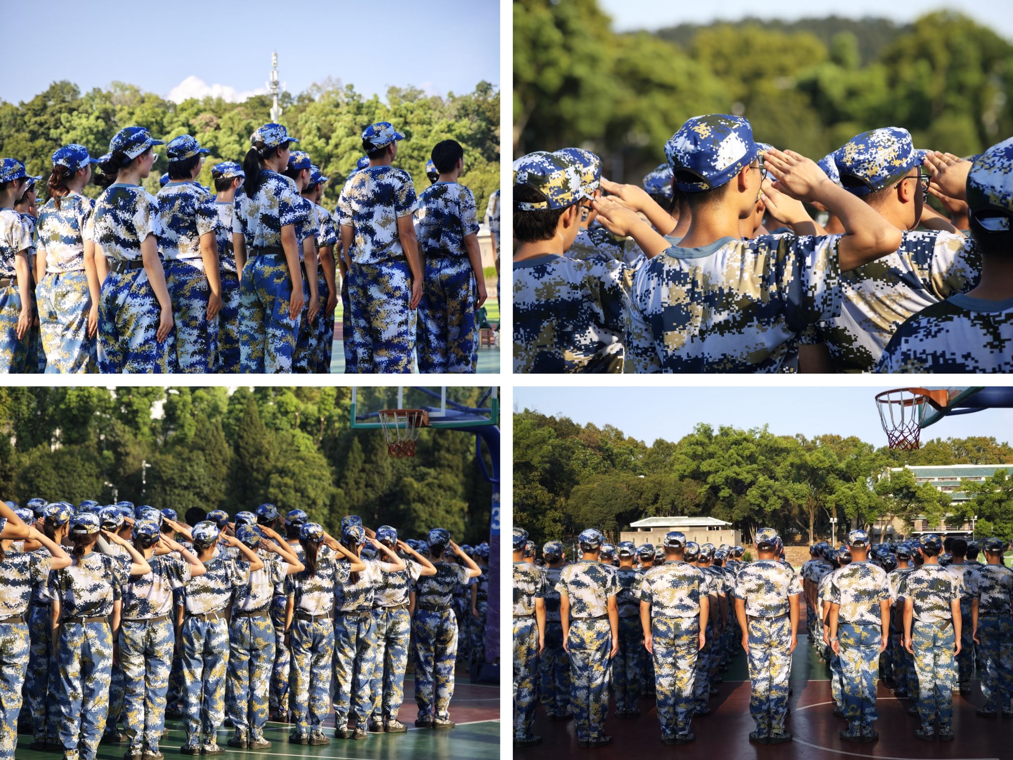 “向左转,向右转,蹲下,起立……”强劲有力的口号声响彻桂园操场。斗大的汗珠浇灭不了学子们训练的热情,酸痛的腰肢阻挡不了学子们学习的决心。从站立到卧倒,从万物之源的军姿到整齐划一的原地踏步,有组织的训练将学子清澈的目光淬炼成了坚毅的眼神,有人走出了暑假的散漫,有人明白了爱国的意义,有人重拾了奋斗的信心。