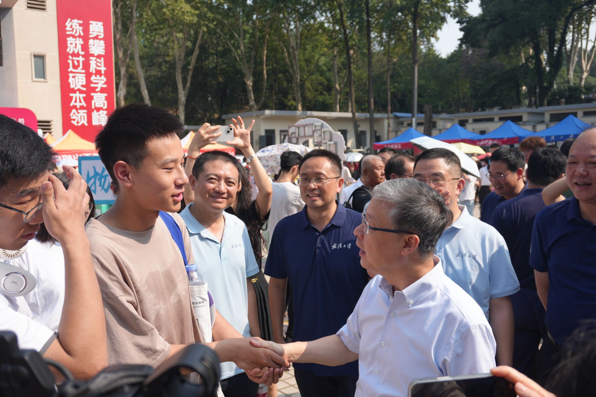 学校高度重视我院迎新工作,党委书记黄泰岩、校长张平文等校领导亲临我院迎新点视察,与我院新生同学及学生志愿者亲切交谈。我院2024级本科生新生田昊、孙策、陈天婴同学作为新生代表,主动向黄泰岩书记、张平文校长介绍了自己对于新时代基础学科发展的信心和进入武汉大学新阶段的目标与方向。黄泰岩书记、张平文校长对同学们的精神风采面貌十分赞赏,对新生们致以诚挚的祝福和问候,并勉励物院新生们发扬求真务实精神,在最美大学探索人生无限可能。