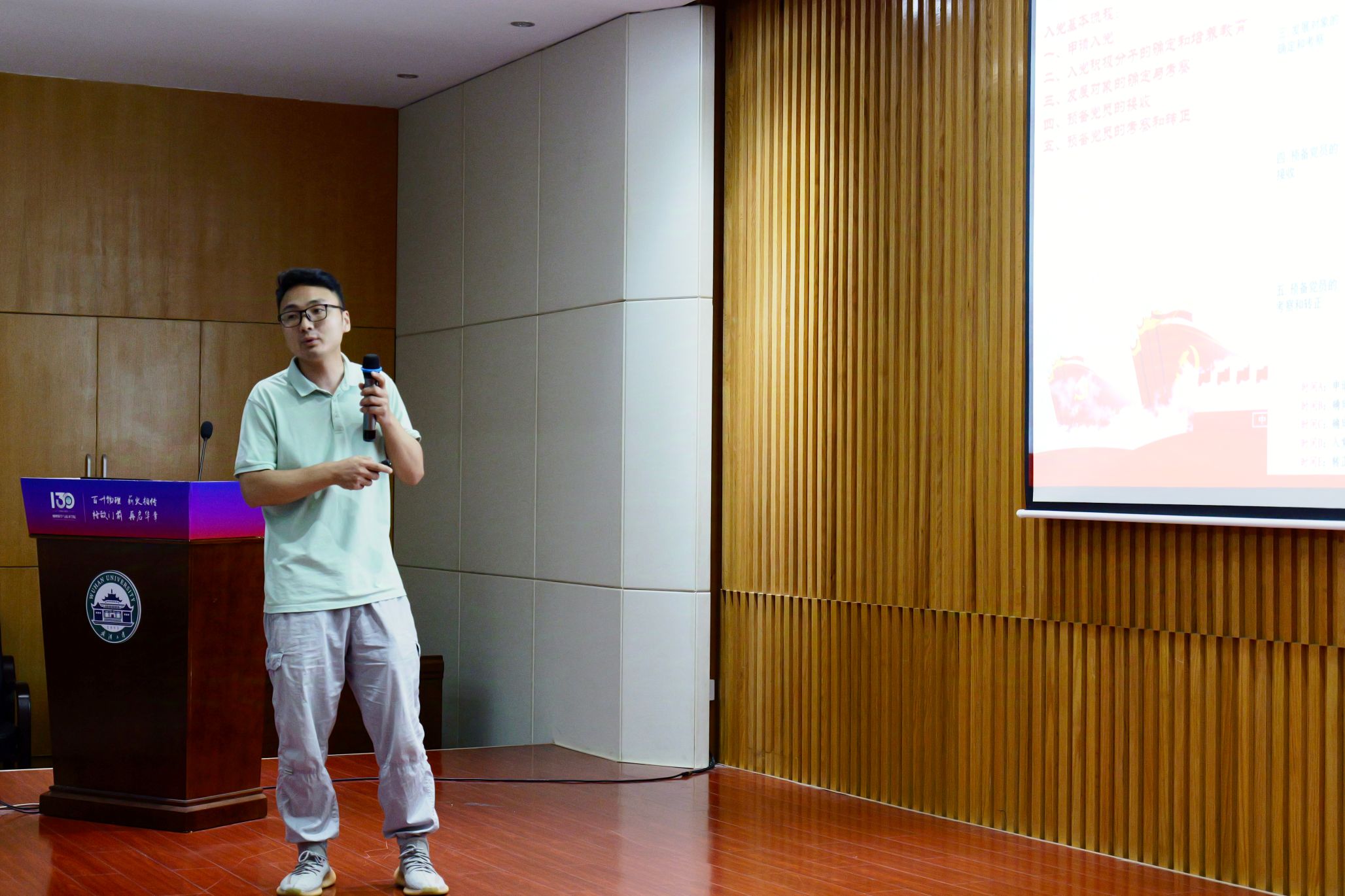 为深入学习宣传贯彻党的二十大精神,积极响应党和国家的号召,增强同学们对中国共产党的深刻理解,明确入党流程及相关要求,树立正确的入党动机,激励同学们积极向党组织靠拢,引导物院青年学子在大学旅途的起始阶段做出正确的选择,培养出一批勇于担当时代使命的物院人。成人直播 在成人直播 A503报告厅举办2024级本科新生入党启蒙教育活动,旨在实现对新生入党的“早启蒙”、“早教育”、“早引导”,确保他们在努力成为党员的道路上能够坚定信念、明确方向。2024级本科生辅导员彭瑾老师、研究生党总支宋建楠、青年讲师团成员吴菁及全体2024级本科新生参加此次活动。