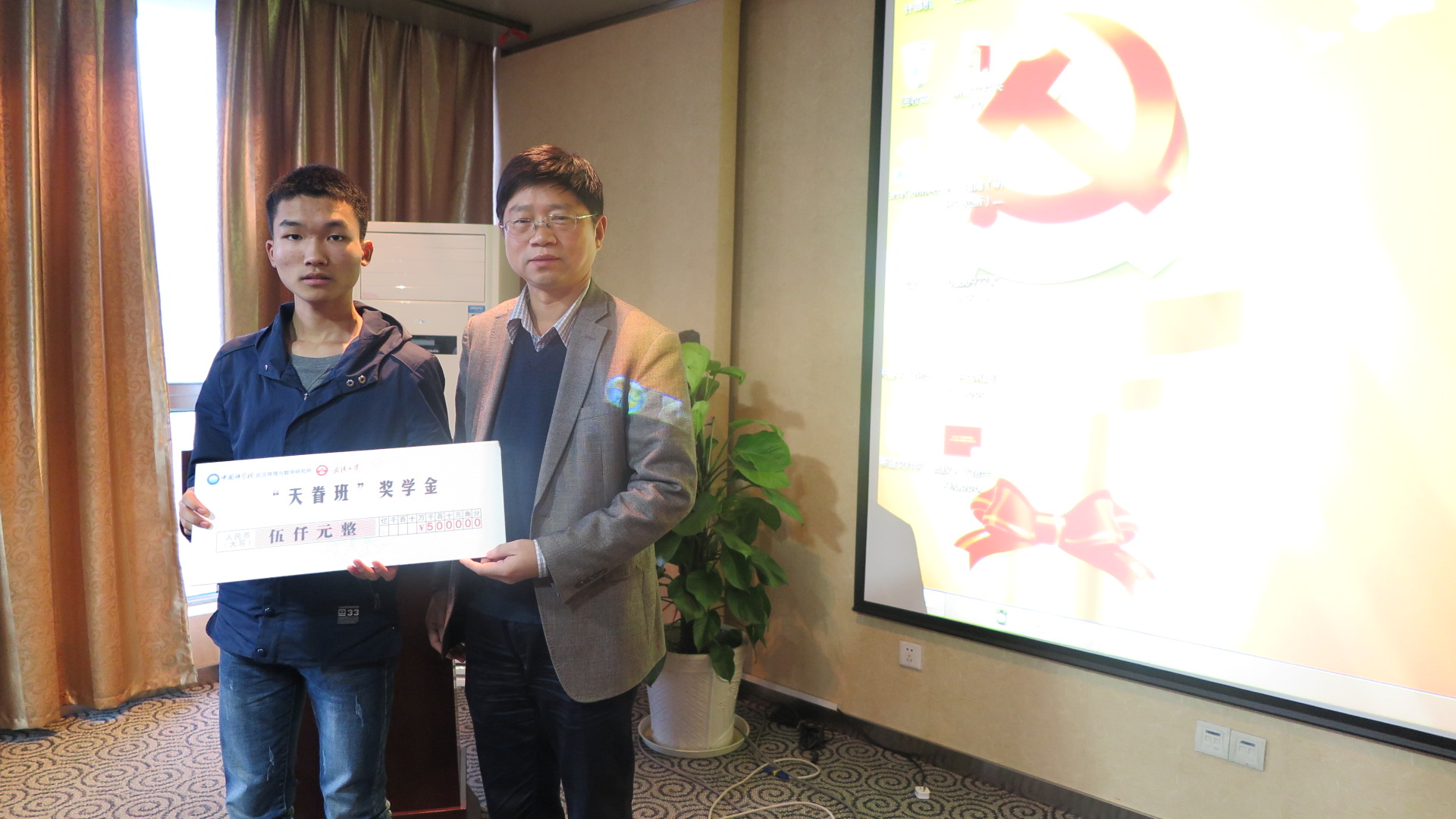 首先武汉物理与数学研究所党委书记詹明生研究员向同学们介绍了武汉物理与数学研究所的主要研究方向及近几年的发展情况,鼓励大家通过自身的努力,将来能够进入物数所继续深造。随后,我院乔豪学副院长向大家介绍了天眷班办班以来,学院在人才培养方面所取得的成果,希望所有天眷班的同学能够把握机会、努力学习,争取获得更好的成绩。天眷班的班长作为学生代表发言,在向研究所和学院老师表达谢意的同时,也对联合培养方案提出了几点建设性的意见。武汉物理与数学研究所研究生处处长李涓老师向大家介绍了天眷班人才培养工作的进展情况及新的奖学金政策。最后,由詹书记向学生代表颁发了奖学金。
