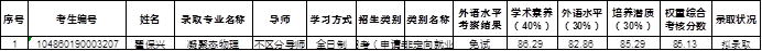 因有一位拟录取博士研究生放弃录取资格,依照考核权重综合成绩从高到低排序,增补以下考生,信息如下: