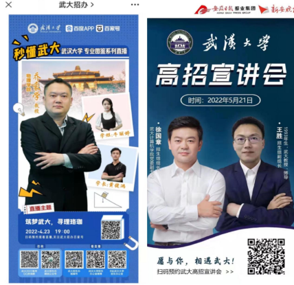 为了更好地普及和宣传物理相关专业,徐红星院士、朱宗宏教授、王植平教授、王胜教授等学院多位高水平人才深入中学开展学术报告、积极参与武汉大学招生宣传报告与直播。