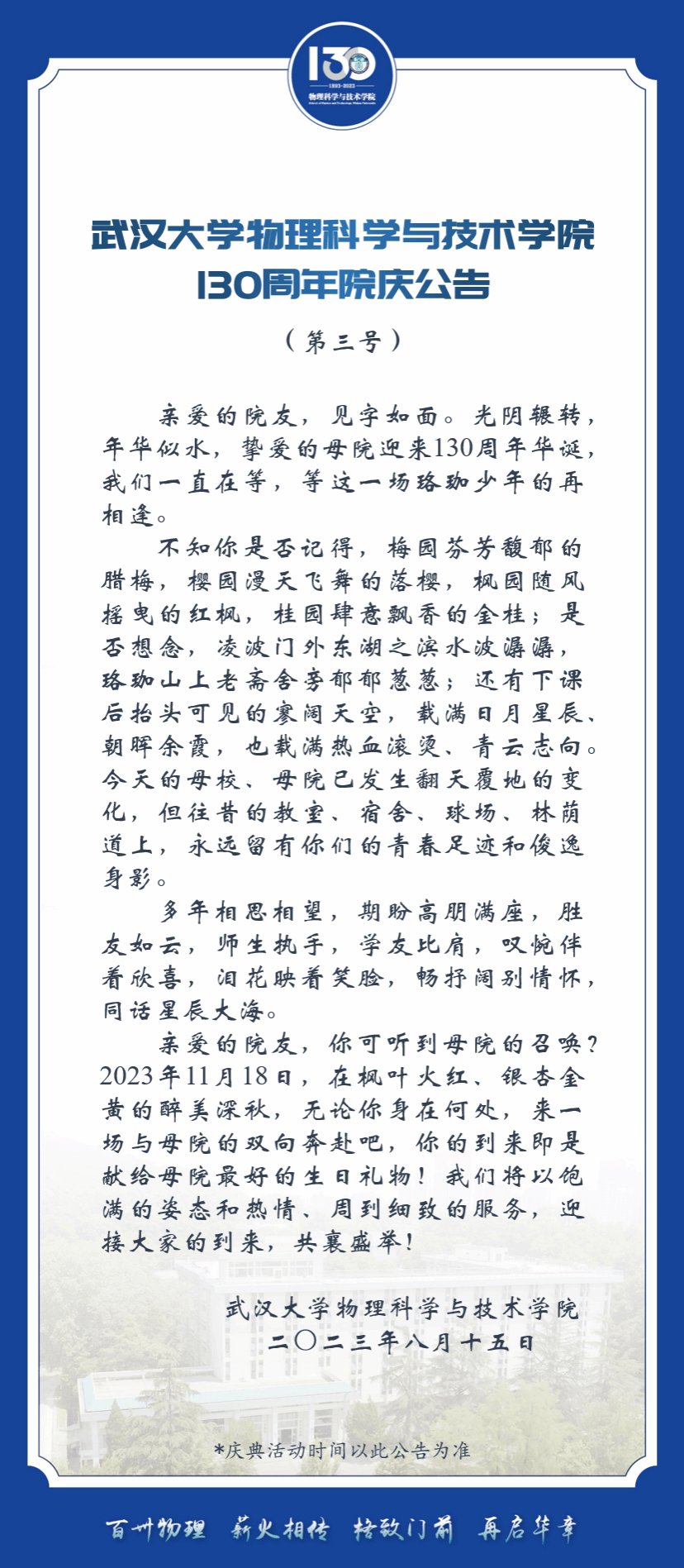 百卅物理 薪火相传 | 成人直播 130周年院庆第三号公告
